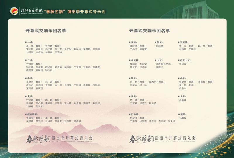 【预告】2025沈阳音乐学院“春秋艺韵”演出季开幕式音乐会