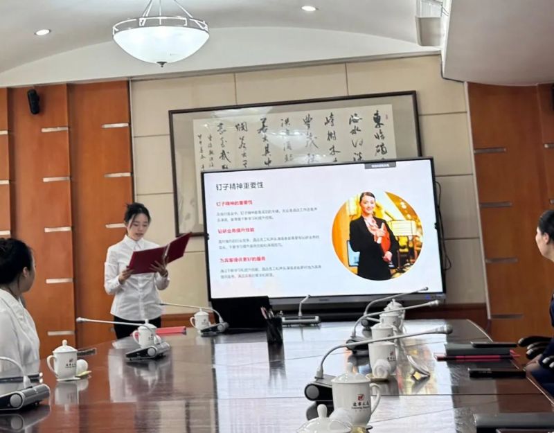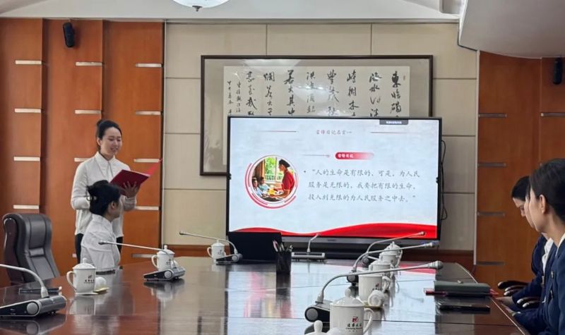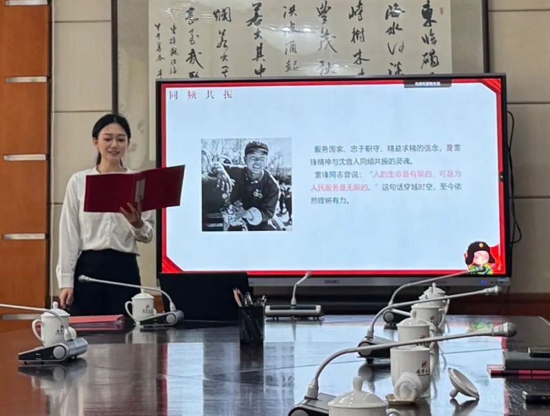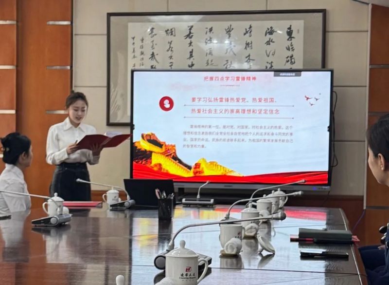 活动伊始,“红色文艺轻骑兵”以“宣讲+音乐”的创新形式,生动诠释了雷锋精神的时代内涵。2023级魏存以《走进雷锋与雷锋精神》为主题,深入解读了雷锋的生平事迹,带领大家走近真实的雷锋,让听众深刻理解雷锋精神的内涵。2022级党员学生朱悦宁以《品味雷锋日记,践行雷锋精神》为题,通过对雷锋日记的细腻解读,引导大家从雷锋的日常记录中汲取力量,将雷锋精神融入到日常生活实践中;2022级党员学生张语格以《继承雷锋传统,弘扬雷锋精神》为题,着重强调了传承雷锋精神的重要性与时代意义,呼吁大家在新时代继续发扬雷锋传统 ;2023级李明轩在以《弘扬雷锋精神,共筑温暖星河》为题的宣讲中,紧密结合辽宁大厦工作实际,阐述了如何在服务岗位上践行雷锋精神,为打造更优质的服务贡献力量;2023级学生吕思萱以《青年担当,践行雷锋精神》为题,展现了新时代青年在雷锋精神指引下应有的担当与作为;2022级党员学生王语涵则以《践行雷锋精神,服务深入人心》为题,生动诠释了将雷锋精神融入服务工作,用真诚服务打动人心的理念。在讲演会尾声,讲演团成员们激昂地合唱《学习雷锋好榜样》,以歌声传递雷锋精神。曲终,会议厅掌声雷动,辽宁大厦前台接待部高丹经理感慨道:“沈音学子们以艺术的语言赋予了雷锋精神新的生命力,这种校企合作的新模式为红色文化的传播开辟了新的途径。”