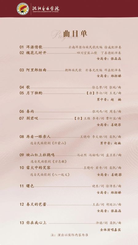 预告!延水长流创辉煌——民族声乐系建系40周年系列活动 | 王永春教授《课堂教学与舞台演唱的融汇贯通》讲座 沈音民族声乐系 2025年11月3日 13:32 辽宁