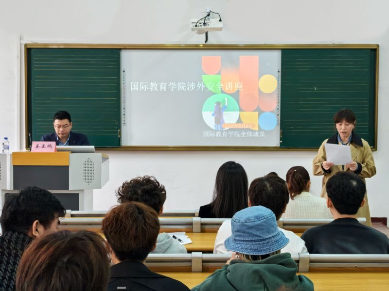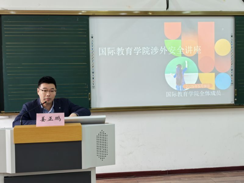 为深入贯彻落实总体国家安全观,提升广大师生的国家安全意识和风险防范能力,5月9日,国际教育学院特邀辽宁省人民政府外事办公室涉外管理处副处长姜正鹏作涉外安全教育讲座。国际教育学院直属党支部书记陆苗、副书记吕竹、副院长夏寒、办公室主任、辅导员及全体在校生参加本次活动。讲座由副书记吕竹主持。