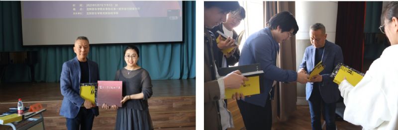讲座现场,与会师生与李彦踊跃互动。李彦细致解答了师生提出的相关疑问,并就舞台人物造型设计中的创意灵感来源、如何平衡历史真实性与艺术表现力、不同类型剧目中人物造型的设计要点等问题与师生深入交流。他还结合多年从业经验,分享了许多实用设计技巧和创作心得。讲座前,学院党委书记刘纪刚为李彦副会长颁发了辽宁省高等学校新型智库沈阳音乐学院戏剧影视学科研究中心专家聘书。此外,李彦还代表广东省舞台美术研究会向戏剧影视美术设计系师生赠送了专业书籍。