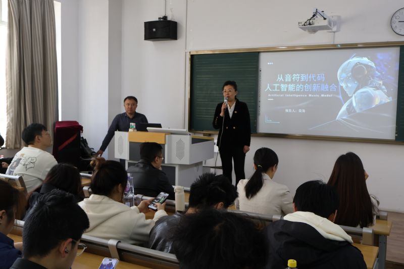 2025年 4月 27日,音乐科技系聘请学院信息化中心副主任栾海为师生带来两场关于人工智能的学术讲座,我系全体师生参加,讲座由党总支书记姚艳秋主持。