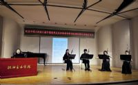 首先登场的是教师党员、弦乐教研室负责人刘黎副教授和“丝叙”二胡重奏组。他们讲演的曲目是胡琴四重奏《游击队之歌》,这首乐曲凭借激昂的旋律与鲜明的节奏,鲜活地展现出游击队员们在敌后英勇抗击敌人、灵活作战的场景,使听众仿佛置身于那个战火纷飞的年代。