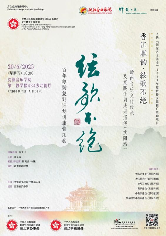 预告 | “岭南风 香江情”香港竹韵小集与沈阳音乐学院交流音乐会