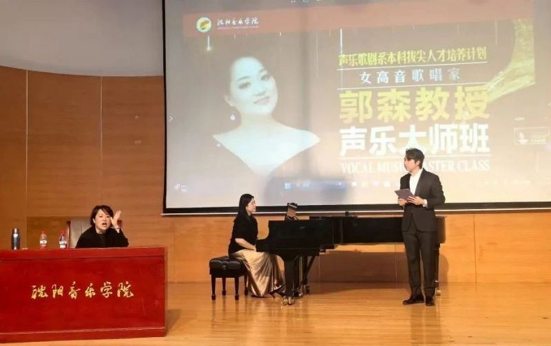 •            为深化本科拔尖人才培养机制,提升我系声乐教学与舞台实践水平,5月26日,旅欧女高音歌唱家、上音歌剧院副院长、上海音乐学院教授、博士研究生导师、中国音乐学院特聘教授郭森受邀在室内乐演奏厅为声乐歌剧系本科拔尖人才举办专场声乐大师班。