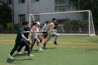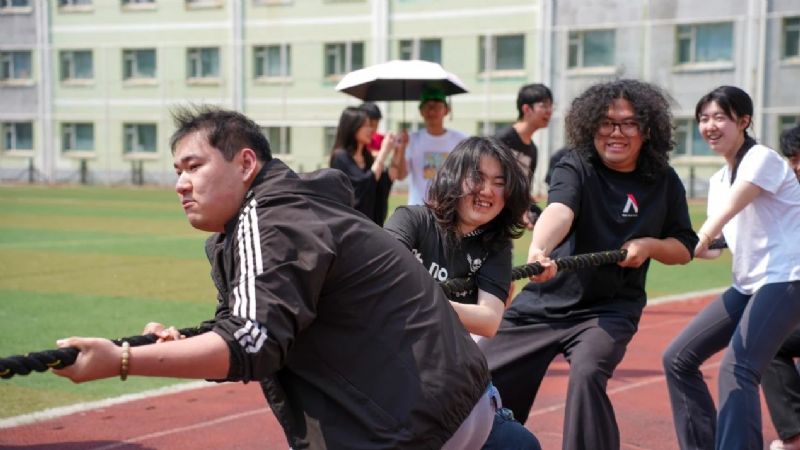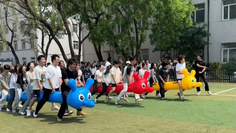 本次运动会聚焦“体教融合 心育赋能”理念,精心设置“旋风竞速跑”“毛毛虫竞速跑”“夹球接力”“拔河”四大特色项目。赛场上,音乐剧系的同学们踏着节奏如风驰电掣,戏剧影视文学系的选手们默契配合稳步前行,戏剧影视美术设计系的创意战术令人眼前一亮。无论是需要团队协作的“毛毛虫竞速跑”,还是考验个人技巧的“旋风竞速跑”,同学们都全身心投入,用汗水诠释拼搏精神,以欢笑传递青春力量。此起彼伏的加油声、欢呼声,为校园增添了最鲜活的色彩。