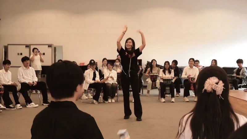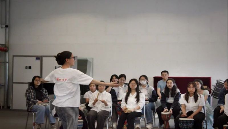 最后,非洲鼓与各种小型打击乐器的即兴合奏将活动推向高潮。学生们通过强弱交替的鼓点释放学业压力,让积压情绪在声波震荡中得以疏解。当最后一个鼓点消散,现场响起自发的掌声,印证音乐作为“心灵语言”的疗愈实效。