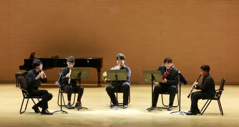 为木管五重奏而做的三首小品之一 Ⅰ 快板 演奏/王梓丞(长笛) 侯懿轩(双簧管) 郎冠森(圆号) 高祥策(巴松) 王宗易(单簧管) 指导教师/颜言