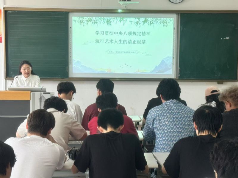她深刻阐释了中央八项规定精神的核心要义,剖析其蕴含的马克思主义执政党建设规律,强调其作为新时代加强作风建设金色名片的永恒价值和强大生命力,是推进党的自我革命的重要实践。深入分析了当前作风建设面临的新形势新任务,指出在复杂环境下,青年一代需要保持清醒头脑,自觉抵制歪风邪气,将中央八项规定精神内化于心的行为准则。她特别强调新时代音乐人的光荣使命,必须将优良作风融入艺术生命,并号召师生,一要以崇德尚艺为根本,追求德艺双馨;二要以人民为中心,创作无愧于时代的精品力作;三要坚守艺术理想,用干净纯粹的作风和昂扬向上的作品,在实现民族复兴的壮阔征程中奏响最铿锵有力的时代强音。
