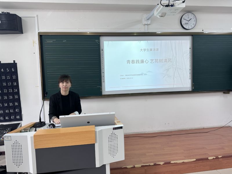 7月1日,国际教育学院直属党支部副书记吕竹以“青春践廉心 艺苑树清风”为主题讲授廉洁教育党课,筑牢校园廉洁文化根基,副院长夏寒、辅导员赵旭及国际教育学院全体在校生参加了学习。