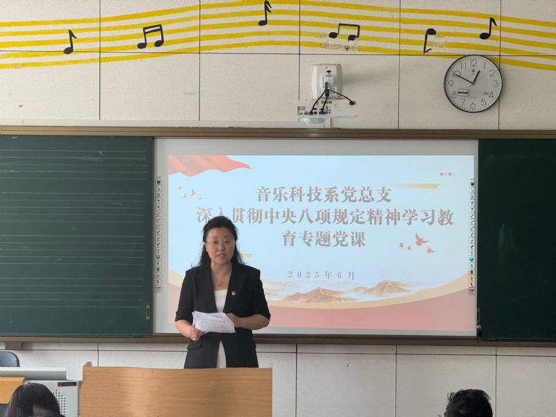 为进一步加强党风廉政建设,推动音乐科技系各项工作高质量发展,6月17日,音乐科技系党总支在长青校区二教308教室,举办深入贯彻中央八项规定精神学习教育专题党课活动。活动由党总支书记姚艳秋主持,音乐科技系党员、入党积极分子以及全体教职工参加了学习。