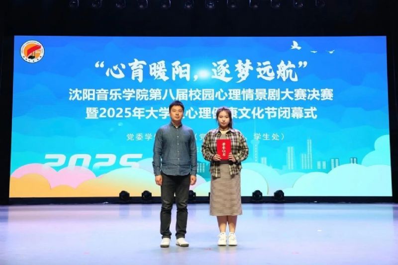 5月26日,沈阳音乐学院第八届校园心理情景剧大赛决赛暨2025年大学生心理健康文化节闭幕式在长青校区音乐剧场举行。学院党委副书记孙旭东等领导出席闭幕式。来自学院各教学单位的近500名师生参加活动。在这场备受瞩目的比赛中,戏剧影视学院精心打造的原创心理剧《骗局》脱颖而出,一举摘得大赛桂冠。