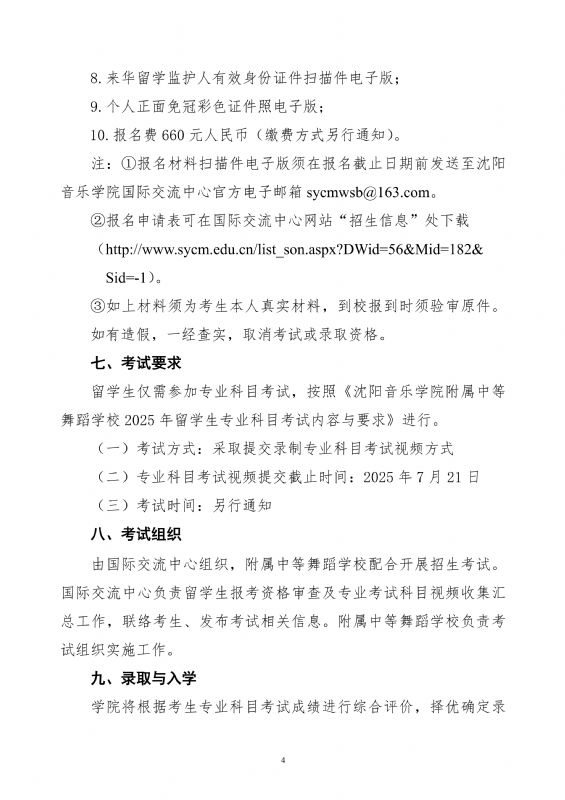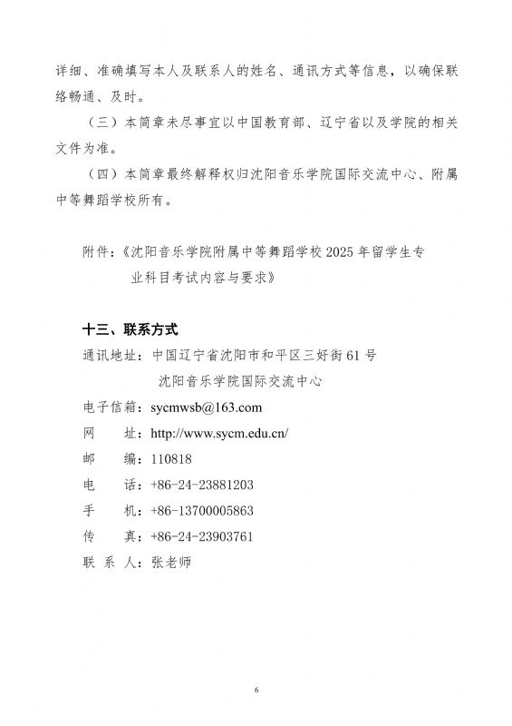 沈阳音乐学院附属中等舞蹈学校2025年留学生专业科目考试内容与要求.pdf