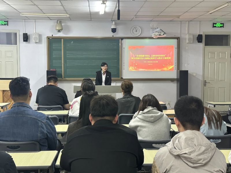 副书记管宁,以《筑牢新时代青年的廉洁防线》为题,以“扣好廉洁从政的第一粒扣子”为主线,结合新修订的《中国共产党纪律处分条例》,教育引导青年党员把廉洁要求转化为日常习惯和自觉遵循,以中央八项规定精神为准则,严于律己,为学院发展贡献自身力量,在学习工作中发挥先锋模范作用,在服务群众中锤炼品格,在奉献社会中增长才干,让青春在为党育人、为国育才的使命担当中绽放清廉之光。