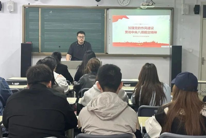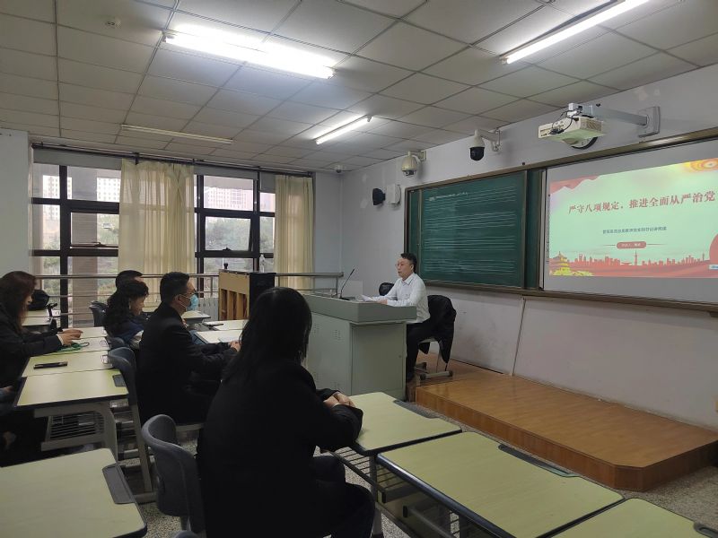 教师党支部书记戛威,以《严守八项规定,推进全面从严治党》为题,从八项规定出台的背景、意义、主要内容为切入点,深入剖析中央八项规定与全面从严治党的内在逻辑,系统阐述了全面从严治党的内涵及对实现党的使命、保持党的先进性的重要意义。他强调,全体党员要通过加强思想教育、改进作风、严守纪律、强化监督等措施,将相关要求落实到教学、科研、管理各环节,助力学院发展与人才培养并以“永远在路上”的坚韧推进作风建设。