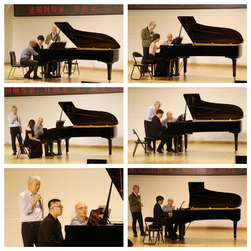 大师课上,肖莱教授从触键技巧、音色层次、踏板运用、情感表达等多个方面,对六名学生的现场演奏进行了细致点评与指导,同时对作品时代背景进行解读,全方位剖析了钢琴演奏的艺术内核。他以德彪西、福雷等法国作曲家的经典作品为例,示范了如何通过细腻的力度控制和节奏处理,赋予音乐更丰富的表现力。他鼓励学生要尝试不同的音乐风格及表现形式,以拓展自己的音乐视野,此外,他还分享了自己在音乐教育方面的理念和方法,强调了培养学生音乐兴趣和创造力的重要性。