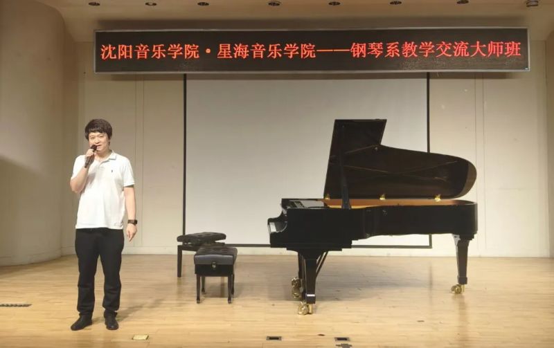 6月12日上午9时,沈阳音乐学院·星海音乐学院—钢琴系教学交流大师班在第二教学楼424多功能演奏厅成功举办,活动由钢琴系副主任崔秀锋主持。
