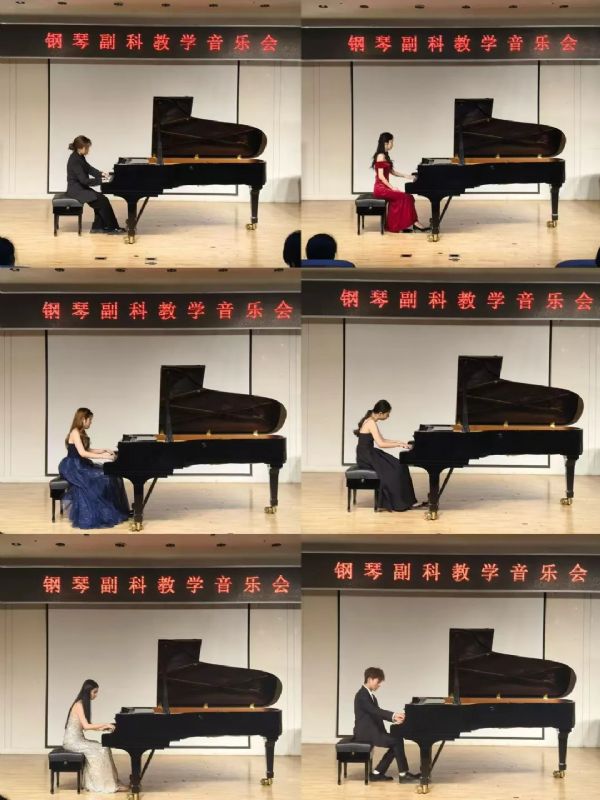 •                          6月19日晚,钢琴系副科教学音乐会在第二教学楼424多功能演奏厅成功举办,音乐会由副科教研室主任张一茵主持。这场音乐会汇聚音乐学系、作曲系、声乐歌剧系、声乐专家组的2023级、2024级学生,展示了十三首风格各异的作品。从中国传统民歌改编的亲切旋律,到西方古典与印象派的深邃意境,多元曲风在黑白琴键上交织碰撞,尽显蓬勃的青春艺术气息。