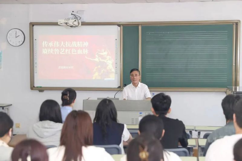 鲁艺诞生于全民族抗战的关键时期,自成立之初便肩负着特殊的历史使命。张健向师生们讲解了鲁艺在抗战烽火中艰难的办学历程,以及鲁艺师生在抗战中创作的《黄河大合唱》等大批具有中国作风和中国气派的经典作品,成为宣传抗战、鼓舞斗志、弘扬民族精神的强大武器。张健结合当前的时事热点讲解了伟大抗战精神的时代价值,并对师生传承伟大抗战精神,赓续鲁艺红色血脉,提出殷切期望。一要坚定理想信念,厚植爱国情怀。要向鲁艺先辈学习,弘扬鲁艺光荣传统,把自身的理想同祖国的前途、把自己的命运同民族的命运紧密相连,把爱国之情、报国之志融入祖国改革发展的伟大事业之中、融入人民创造历史的伟大奋斗之中。二要淬炼斗争精神,直面困难挑战。要敢于斗争、善于创造,将开拓进取、攻坚克难、扎实推进中国式现代化的信心和决心内化为“强国有我”的实践动能。三要铸牢历史自觉,传承精神火炬。要增强历史责任感和使命感,从伟大抗战精神中汲取营养,传承红色基因,发挥专业优势,用优秀的文艺作品弘扬民族精神,积极投身中国式现代化建设,在民族复兴的伟大征程中书写新时代的青春答卷。