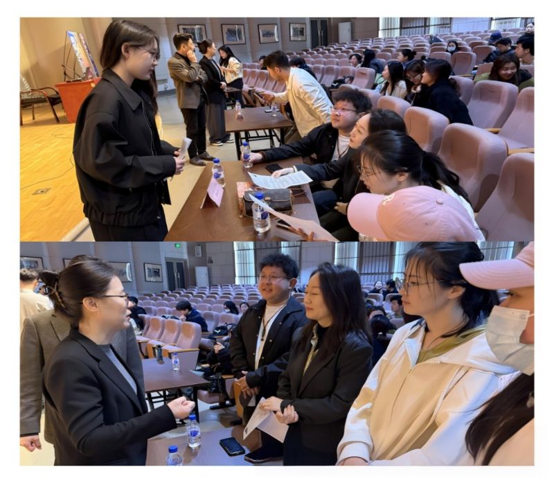 在用人单位宣讲环节,三家行业领跑者展现出艺术传媒领域的多元可能:笑点传媒聚焦传统艺术的现代化表达,帧理文化深耕数字内容创新传播,饺蛋蛋科技则探索艺术与科技的深度融合。企业代表们不约而同强调,在文化传媒产业蓬勃发展的今天,既需要扎实的艺术素养,更呼唤跨界融合的创新能力。现场面试环节,学子们以精湛的专业素养和开放的创新思维,展现出新一代鲁艺青年"守正创新、知行合一”独特优势。