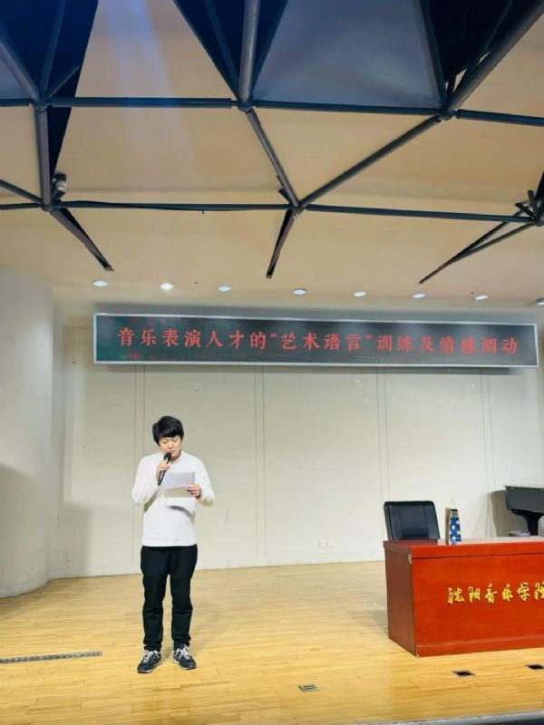 4月29日上午,沈阳音乐学院第二教学楼 424 多功能厅内气氛热烈,钢琴系艺术实践周系列活动之一 ——《音乐表演人才的 “艺术语言” 训练及情感调动》讲座成功举办。此次讲座特邀戏剧影视学院戏剧影视表演系刘德权教授主讲,为钢琴系师生带来一场别开生面的跨学科艺术盛宴。讲座由钢琴系副主任崔秀峰主持。