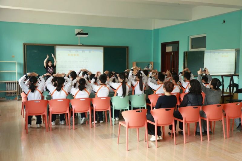 “金号角”育苗支教团音乐教育学院2022级研究生李亚颖与音乐教育系2021级本科生张芳硕分别讲授了《中国人民志愿军战歌》和《青春舞曲》两首歌曲。李亚颖以“听觉化的战斗宣言”为主题,带领初一学生解析歌曲的音乐语言,通过击掌体验2/4拍规整节奏,感受旋律中四度跳进传递的必胜信念。张芳硕以新疆维吾尔族传统节奏型为切入点,引导学生用手鼓拍打切分音,在欢快律动中探讨“青春不可逆”的命题。