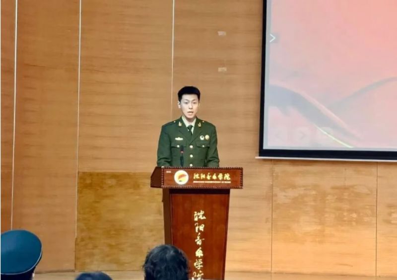 退役士兵音乐教育学院刘昊暄进行了发言,他分享了自己的军旅生涯和心路历程,鼓励学弟学妹积极响应党和国家号召,在火热军营中书写青春理想。学员代表戏剧影视学院伏尧在发言中表达了成为一名“雷锋兵”预征班学员的自豪与骄傲。他表示将与学员一起努力学习、刻苦训练,在强军征途上赓续雷锋精神,用实际行动书写精彩的军旅篇章。