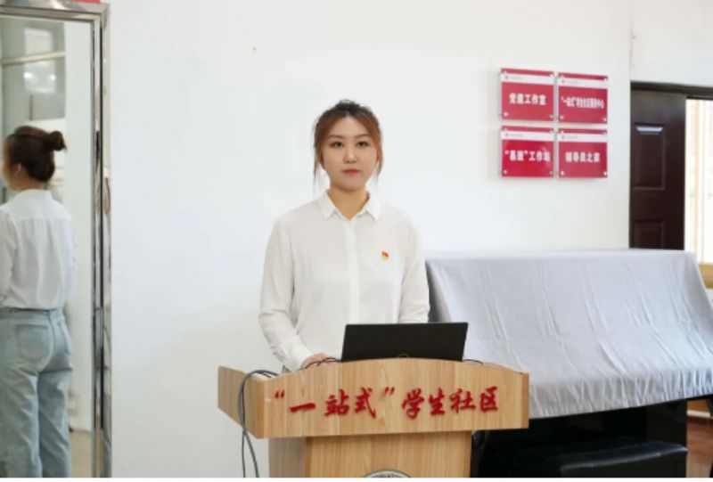 赏析会上,李鑫泽首先介绍了歌曲的创作背景、音乐结构、影响意义等,随后,她播放了《年轻的朋友来相会》的视频,直观的视听感受伴随着精彩的讲解激发了现场同学的情感共鸣,让大家深刻感受到歌曲中蕴含的爱国情怀和时代精神。