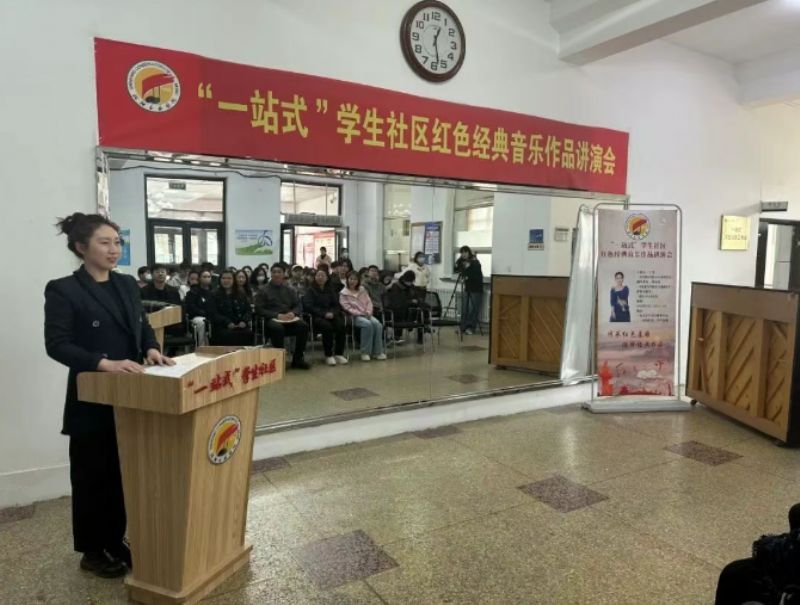 4月11日,由学院举办的第37期“一站式”学生社区红色经典音乐作品讲演会在三好校区“一站式”学生服务中心举行。音乐教育学院相关负责人、学生科科长、辅导员及50余名学生代表参加讲演会。讲演会由音乐教育学院辅导员刘佳楠主持。
