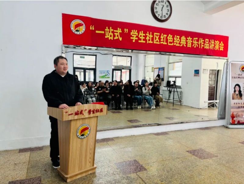 4月3日,由学院举办的第三十六期“一站式”学生社区红色经典音乐作品讲演会在三好校区“一站式”学生服务中心举行。声乐歌剧系相关负责人、辅导员及50余名学生代表参加讲演会。讲演会由声乐歌剧系辅导员董帅主持。