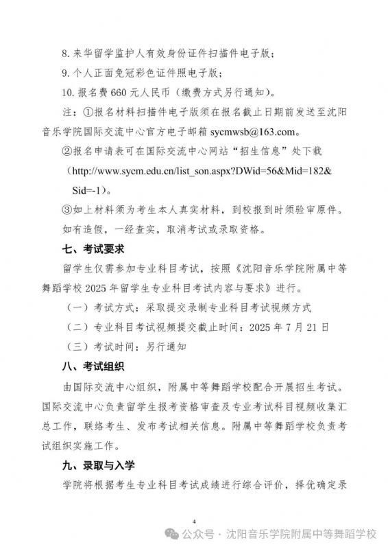 沈阳音乐学院附属中等舞蹈学校2025年留学生招生简章