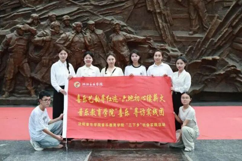 为深入学习贯彻习近平新时代中国特色社会主义思想,献礼新中国成立76周年暨世界反法西斯战争胜利80周年,沈阳音乐学院音乐教育学院“喜乐”寻访实践团依托辽宁红色六地资源,以“音乐+思政”创新模式走进辽宁红色展览馆,开展了一场有深度、有温度、有力量的暑期“三下乡”社会实践活动。