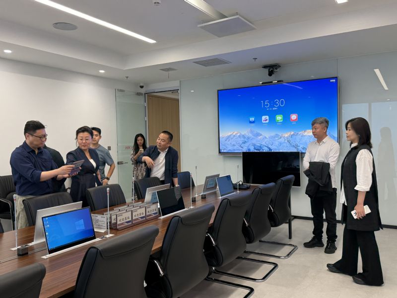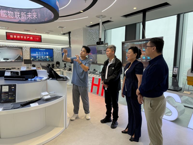会后,双方共同参观了海康威视辽宁业务中心的展厅与演示中心。赵宏旭现场展示了公司在视频监控、红外成像、会议音频系统、VR全景摄像等方面的最新产品与应用场景。汪洋结合音乐科技创新实验室的现有资源,提出将海康设备用于声学检测、虚拟演出、多感官疗愈空间构建等方向的合作设想。