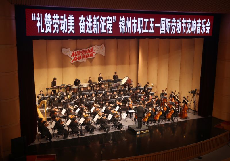 4月28日,沈阳音乐学院2025年“春秋艺韵”春季演出季系列活动——“礼赞劳动美 奋进新征程”锦州市职工“五一”国际劳动节交响音乐会在锦州市工人文化宫成功演出。本次音乐会由锦州市总工会主办,锦州市职工服务中心承办,沈阳音乐学院北方交响乐团与学院师生联袂呈献,以动人乐章礼赞劳动楷模,用高雅艺术弘扬拼搏精神。锦州市人大常委会主任郝建军,市政协主席于鹏,市委常委、统战部部长范丹宇,市人大常委会副主任、市总工会主席袁力,副市长、高新区党工委书记孙志海,学院党委书记赵恒心、副院长庞渤与劳动模范和职工代表近1000名观众共同观看了音乐会。