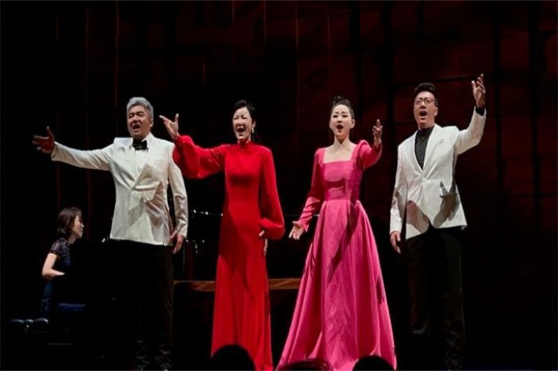音乐会在庄严的氛围中拉开序幕。民族器乐重奏《红高粱》用竹笛、唢呐、二胡、琵琶等多种民族乐器共同奏响了抗战岁月中的悲壮与激情,为整场演出奠定了基调。随着一首首耳熟能详的经典旋律响起,《松花江上》《嘉陵江上》《黄河颂》《游击队之歌》《追寻》等作品唤起观众跨越时代的情感共鸣。