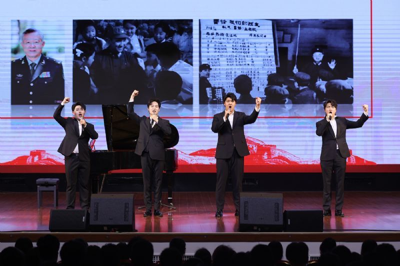 男声四重唱《雷锋,我们的战友》演唱:唐宁泽(学生拔尖人才)、任建斌(学生拔尖人才)、田一超(学生拔尖人才)、张浩之(学生拔尖人才)