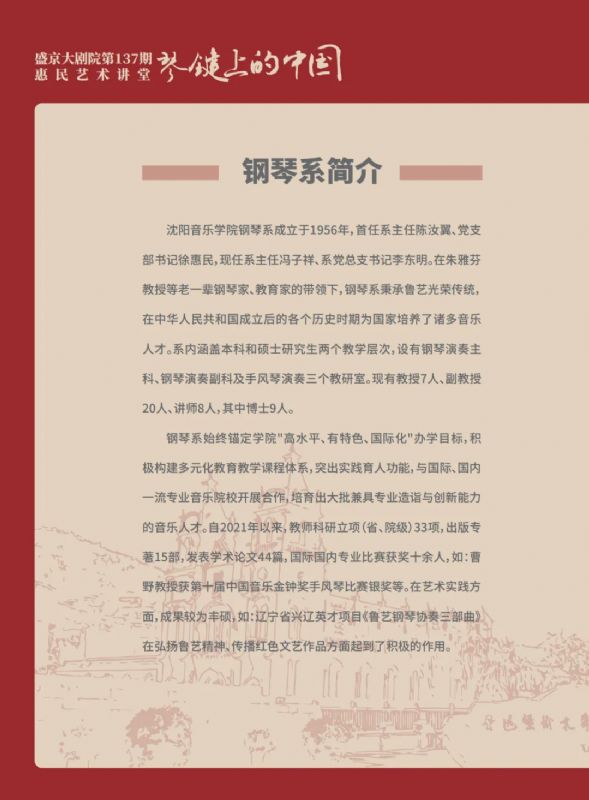 预告|琴键上的中国——盛京大剧院第137期惠民艺术讲堂