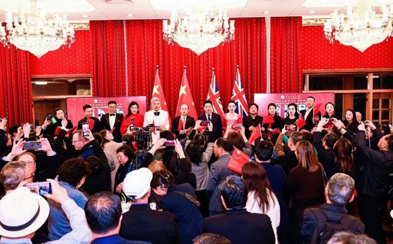 在中国驻澳大利亚大使馆,《我爱你中国》《把一切献给党》《百鸟朝凤》等饱含爱国情怀的歌曲和民乐经典响彻全场,《我和我的祖国》动人的歌声彰显音乐跨越国界的力量。中国驻澳大利亚特命全权大使肖千,澳联邦参议员休布里奇、各驻澳使团、华侨华人、留学生代表与各界人士近400人出席。