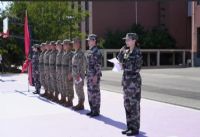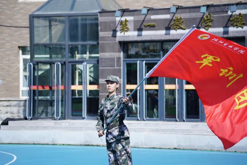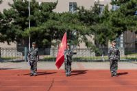 在振奋人心的授旗环节,承训部队教官庄严地将军训团的旗帜授予参训新生代表,旗帜在风中猎猎作响,象征着军训的正式开始,也承载着新生们即将面临挑战、突破自我的坚定信念。