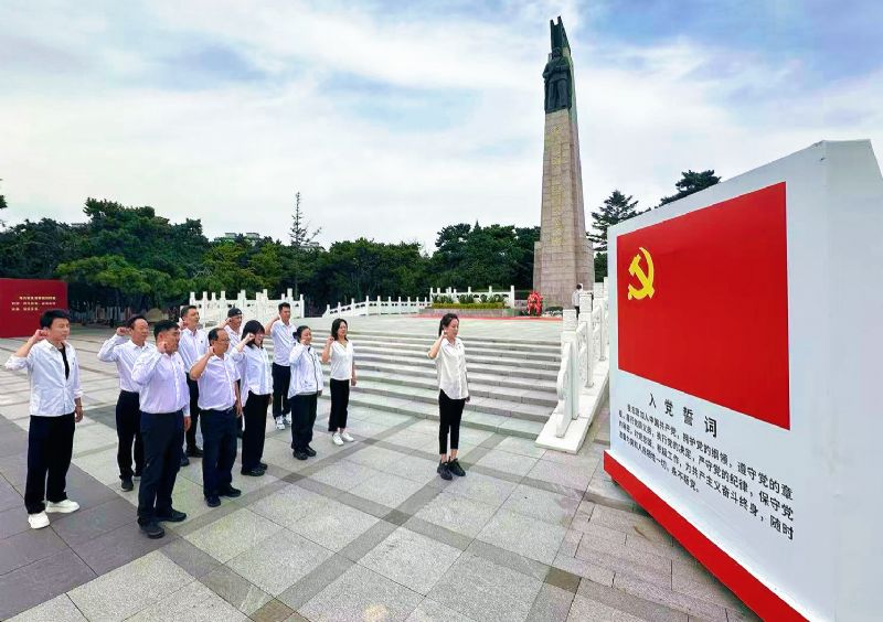 面对党旗,党员们重温入党誓词:“随时准备为党和人民牺牲一切”的铮铮誓言在陵园中回荡,与长眠于此的英雄们产生了跨越时空的共鸣。这一刻,我们更加深刻地理解了共产党人的初心和使命,更加坚定了理想信念。