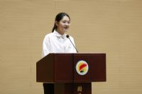 演唱学科杜博老师代表全体教师发言,她结合多年教学经验与艺术感悟为新生送上寄语,鼓励同学们勇敢直面学习中的挑战,充分利用学校优质的教学资源与艺术平台,在音乐探索中不断突破自我,发掘艺术潜能。
