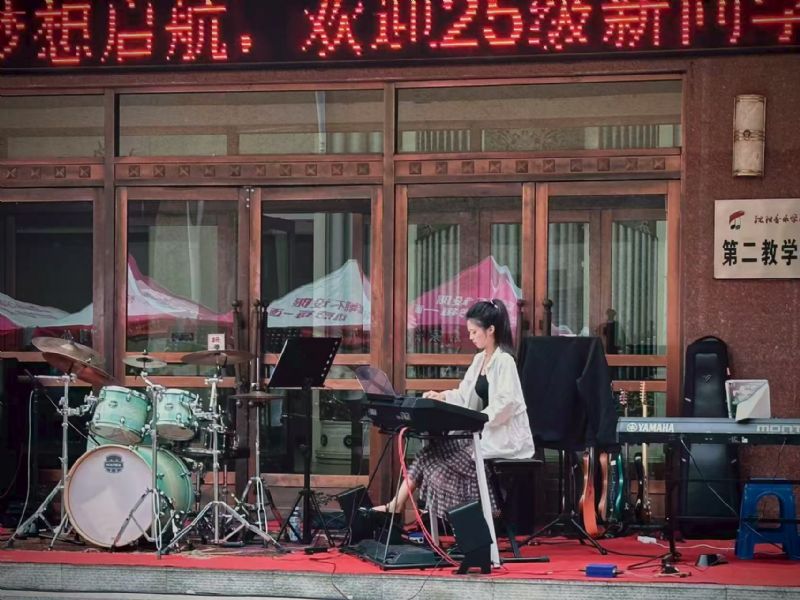 迎新当日,沈阳音乐学院领导来到我院报到现场,慰问参与迎新工作的师生,与新生及家长亲切交流,详细询问新生的入学准备情况,认真倾听他们的心声。学院党委书记赵恒心为我院当天过生日的新生邓雨萌佩戴校徽并赠送书籍,院长田彦为其送上生日蛋糕与祝福,叮嘱学生要珍惜大学时光、努力夯实专业基础,做具有深厚艺术素养与鲜明时代精神的优秀音乐人才。迎新现场,现代音乐学院电子管风琴系的拔尖人才蔡艺凡弹奏的《黄河》、流行器乐系小乐队合奏的《选择》、流行声乐系学生左书源演唱的《追寻》等节目赢得学院领导和新生及家长的热烈掌声。