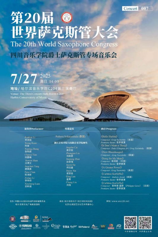 而在四川音乐学院爵士专场音乐会上,两校师生联袂首演了由美国著名爵士作曲家Greg Yasin itsky为本届大会特别创作的作品《你好,哈尔滨》。作品将城市记忆与国际语言交融呈现,象征着中外文化的深度交流,也展现出两校在萨克斯艺术教育领域持续交流与协作的丰硕成果。这场充满创意的音乐对话,获得现场观众及海内外专家的一致赞誉。