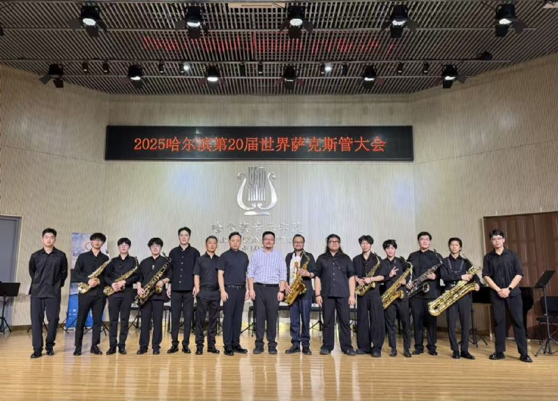 7月26日至31日,由世界萨克斯管委员会与中国萨克斯协会联合举办的第20届世界萨克斯管大会在哈尔滨举行。这是该音乐盛会自1969年创办以来,首次落户中国。来自30多个国家和地区的萨克斯演奏家和爱好者汇聚一堂,奏响这一场世界级的音乐盛宴。我院现代音乐学院爵士大乐队作为全国唯一一支入选本届大会的爵士大乐队,在此次盛会上举办了沈阳音乐学院爵士大乐队与四重奏专场音乐会,并受邀参演四川音乐学院爵士专场音乐会和世界萨克斯大会全明星爵士专场音乐会。乐团师生们以精湛的演奏技艺和富有感染力的演出征服了现场观众,更通过与国际同行的深度交流,向世界展现了当代中国高等音乐教育的卓越风采。