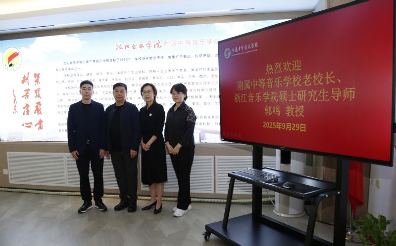 讲座正式开始前,附中精心筹备了简短而隆重的欢迎仪式。附中党总支书记胡术艺,校长曹野,党总支副书记谢晓宇及理论学科教师共同出席,对郭鸣教授的“回家”表示热烈欢迎。胡术艺书记在欢迎致辞中提到,郭鸣教授在附中任职期间,始终深耕音乐教育与学校管理,为附中人才培养奠定了坚实基础,如今虽赴浙江音乐学院任职,但始终心系附中发展;曹野校长也表示,期待通过此次讲座,让附中师生既能学习前沿创作理念,也能感受郭鸣教授对音乐教育的热忱,进一步激发创作与学习动力。郭鸣教授对附中的盛情接待致以感谢,并坦言回到熟悉的校园、见到师生们倍感亲切,希望通过本次分享,为师生的音乐创作之路提供切实帮助。