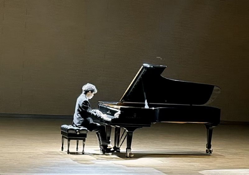 整场演出曲目设计兼具深度与广度。张瀚朗先后演绎了舒伯特《a小调第十六钢琴奏鸣曲》与普罗科菲耶夫《降B大调第八钢琴奏鸣曲》两部经典作品,并在下半场呈现了叶小刚《纳木错》、柴可夫斯基《两首小品》、斯克里亚宾《第五奏鸣曲》。这些作品风格跨度大、技术难点密集,全面考验了演奏者的音乐理解与控制能力。