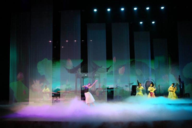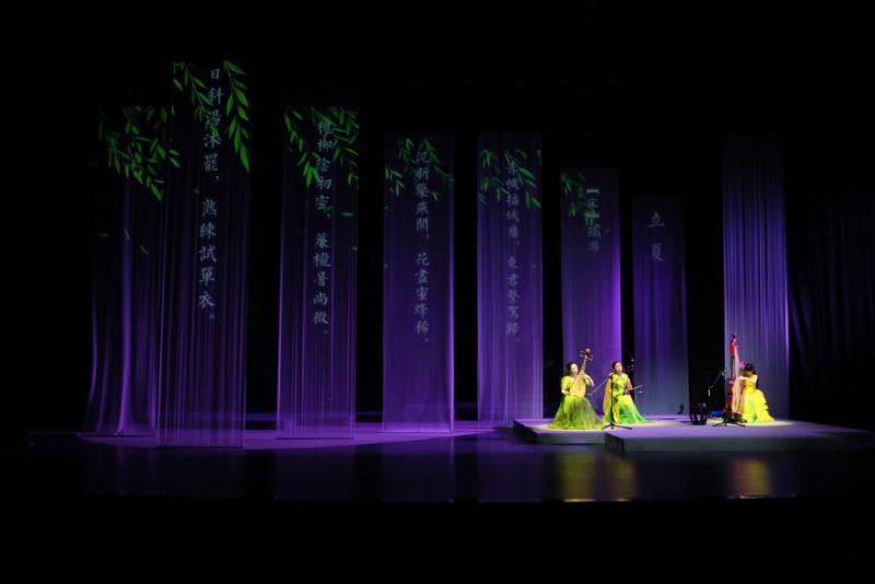 《立夏》让夏天的气息涌动全场,琵琶、二胡和箜篌交织出一幅万物并秀、新荷初绽的初夏图景。