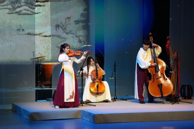 随后的《小雪》展现中西弦音对话,竹笛声模拟着雪花悄然飘落的姿态,大小提琴的加入带来一丝别致的色彩,描绘出初冬第一场雪的清新与温柔。