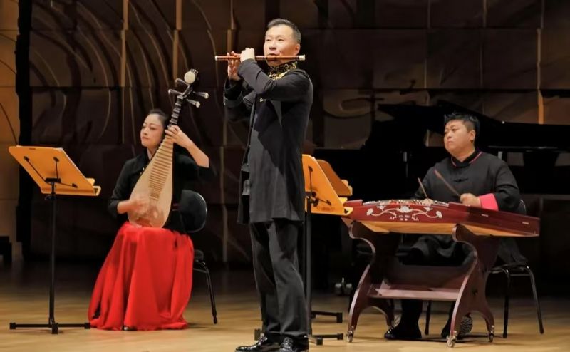 此次巡演,我院各专业优秀师生同台献艺,为澳大利亚观众呈现了一场高水准的音乐盛会。其中,有一支独具特色的民乐演奏家小组,由民族器乐系主任张科威、管乐与打击乐教研室主任沈建晖、二胡专业教师王琳、琵琶专业教师邵笑、笙专业教师陈人杰、打击乐专业教师张优涵以及附属中等音乐学校民乐学科副主任白静7人组成。音乐会中,7位演奏家呈现了民族器乐重奏《红高粱》、笛子独奏《扬鞭催马运粮忙》、二胡独奏《雪山魂塑》、唢呐独奏《百鸟朝凤》、民族器乐重奏《光明行》五首经典音乐作品,这些作品既传递了中华民族千年文明的底蕴,又展示了中国文化当代创新的活力。7位演奏家精湛的演奏技艺、生动的音乐表达,充分展现了中国民族乐器独特的魅力,赢得了澳大利亚观众的喜爱。