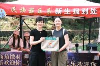 迎新当日,学院领导来到我系迎新点,看望2025级新生及亲友,并慰问参与迎新工作的师生。党委书记赵恒心为我系当天过生日的新生范羽萱佩戴校徽并赠送书籍,院长田彦为新生送上生日蛋糕与祝福,暖心的叮嘱和殷切的期盼为同学们的大学征程树立清晰的目标,注入满满的信心和能量。迎新现场,来自新疆维吾尔自治区的新生阿依迪娜·亚森艾跳起了欢快的《青春舞曲》,灵动的舞步如行云流水,将维吾尔族舞蹈的热情与活力展现得淋漓尽致,她为自己成为新时代的沈音学子感到骄傲和自豪,她立志深耕热爱,砥砺奋斗,成为民族团结进步的践行者;其他民族的同学们跟着节奏挥舞手臂,沉浸在舞蹈的旋律和美妙的歌声里,大家的心都随着韵律紧密相连。